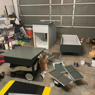 Miniature mobile garage - designed, fabricated, and finished a custom display for a garage door startup's trade show booth, along with designing and printing marketing elements for the booth (stickers, banners, and embroidered company polos):