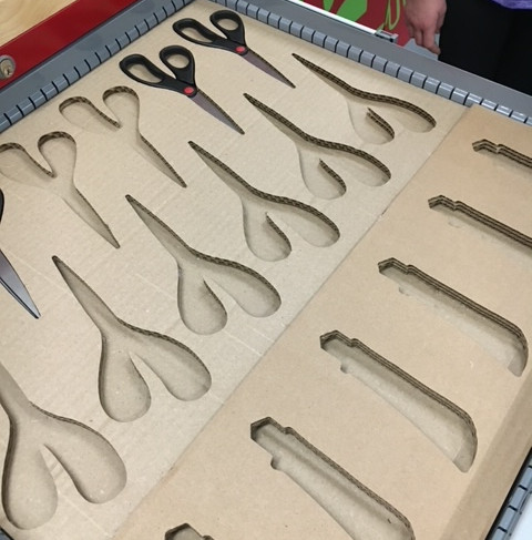 Laser cut tool organizers - tracings were digitized to cut and laminate layers of cardboard: